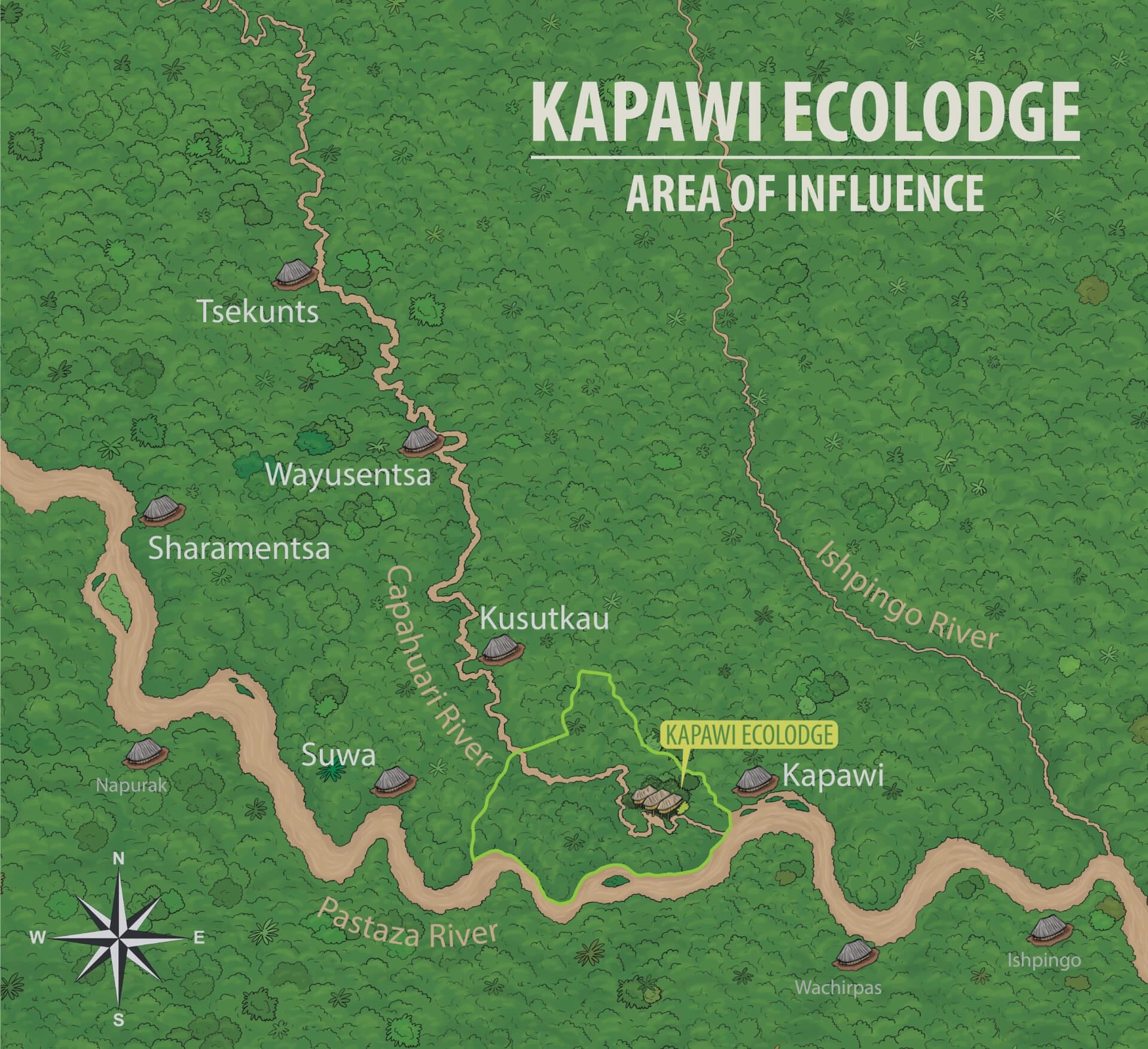 Sobre el Río Conambo, territorio de la Nación Sapara; declarada Patrimonio Inmaterial de la Humanidad por la UNESCO, se desarrolla este proyecto, donde los Saparas comparten sus conocimientos y experiencias sobre el mundo material y espiritual; para entregar a los visitantes una transformación personal mediante un proceso de sanación inolvidable.