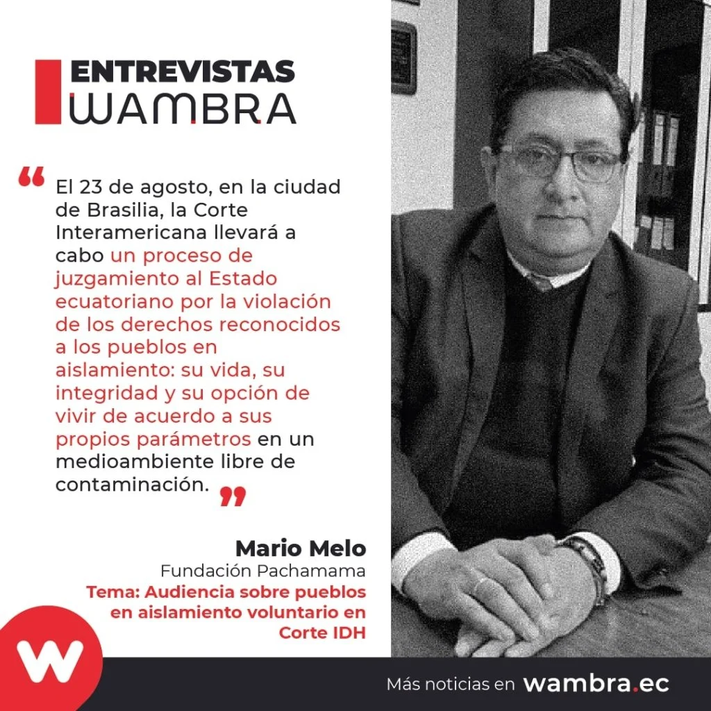 Mario Melo, abogado de la Fundación Pachamama, en entrevista con Wambra habló acerca de la audiencia sobre pueblos en aislamiento voluntario. Este proceso se inició en 2006, luego de que en 2003 hubo una masacre en la que murieron más de 20 personas del Pueblo Taromenane. Este caso fue presentado ante la Comisión Interamericana por un grupo de activistas y personas comprometidas con los derechos de los pueblos del Yasuní. El trámite lleva ya 16 años y, apenas este 23 de agosto, en la ciudad de Brasilia, la Corte llevará a cabo un proceso de juzgamiento al Estado ecuatoriano por la violación de los derechos reconocidos a los pueblos en aislamiento: su vida, su integridad y su opción de vivir de acuerdo a sus propios parámetros en un medioambiente libre de contaminación.